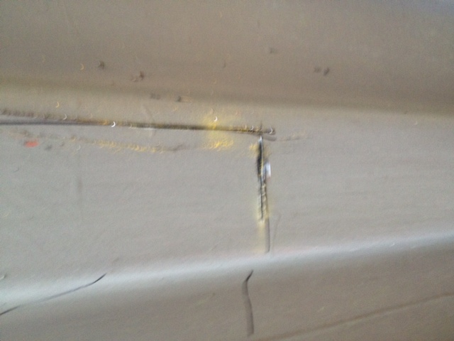 So you will end up with rectangle drawing. Begin at the bottom left corner and using the angle grinder, cut a horizontal cut following the black magic marker line. Your aim with the angle grinder is simply STARTING THE CUT, not cutting the whole thing with the angle grinder. Next making a VERTICAL cut with the angle grinder that starts at the vertical cut in the corner and goes up. Again, you only need a bit to get started. Go to the opposite corner of your marked out rectangle- the top right corner and cut a horizontal cut to the left and a vertical cut down.