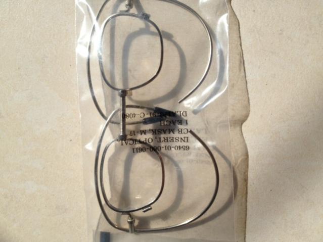 Eye glass inserts for gas masks. Designed for the US mask, these can be adapted and used in many different models of gas masks.