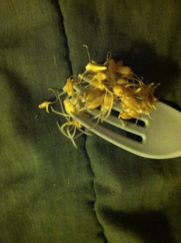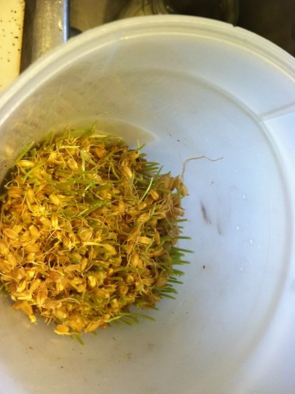 Tonight, the sprouted wheat all have at least three sprout/roots most have Four... I am not measuring Each One, but average length is about 1/2 inch, the Hulls have become so soft they are non existent. There is no Gluten/Dough/Bubble Gum... an increase in sweetness, a fullness of belly, bite by bite!