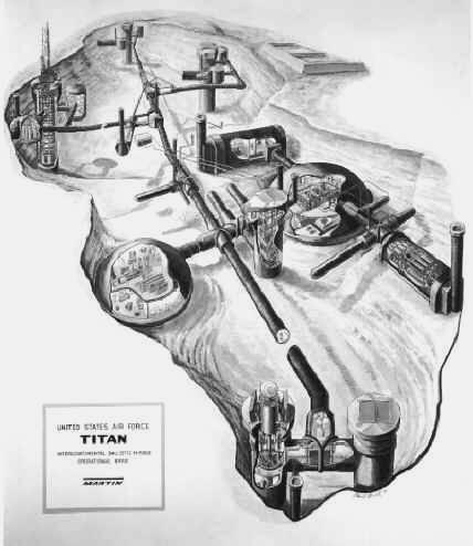 to help everyone visualize this a little bit, here is a diagram of the Titan missile complex. the missile silos are at the top of the pic, the domes are in the middle, and the antenna silos are at the bottom.