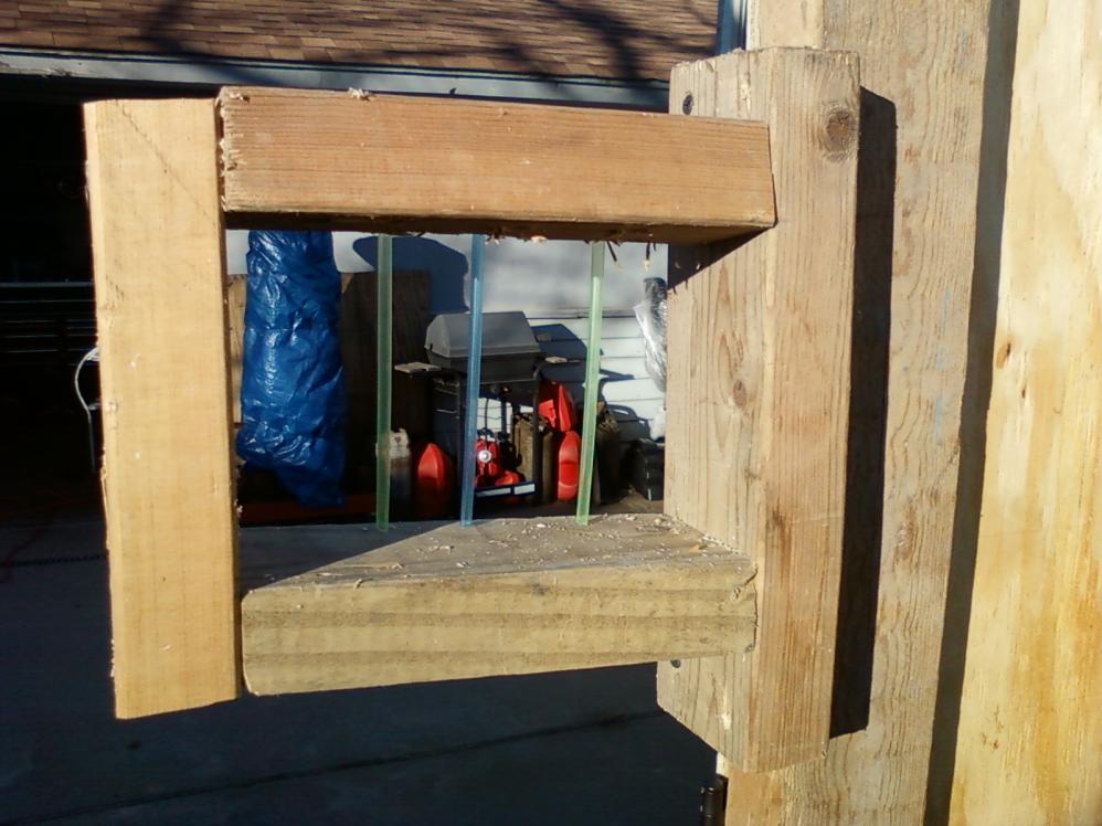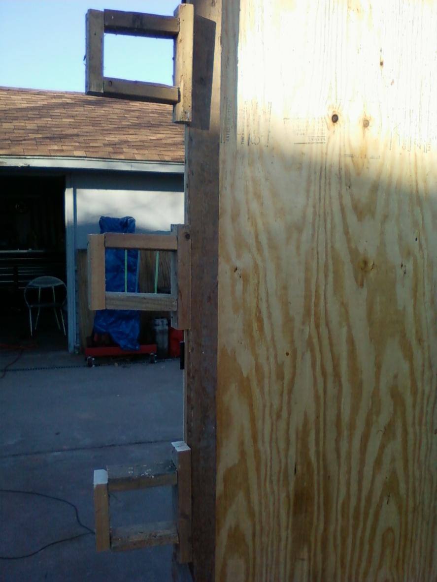 My improvised "hinges" and cheapie method of holding them in long enough to get gunned down. Today is a good test, winds blowing 30+