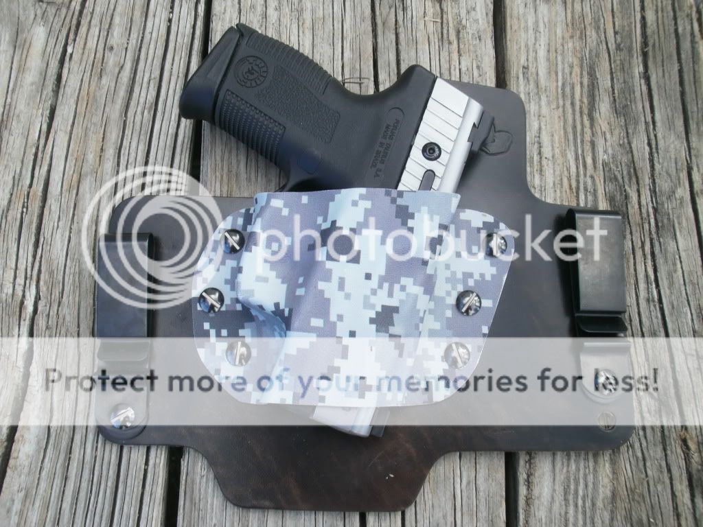 here's the big thing that drew me to Whitehat. Their kydex. they offer theri kydex in a slew of different colors, patterns, and pictures. i have yet to find any other company doing this. and to make it even better, you can SWAP the kydex. there is no longer a need to have seperate holster for each and every CC gun you have and carry. one leather, and multiple kydex. no more spending $60-$80 dollars per holster. each additional kydex is $7-$15 dollars. with about 1 minutes work, and a flat head screwdriver you can swap your kydex, and be carrying a different gun. plus you can have different colors or patterns for each.