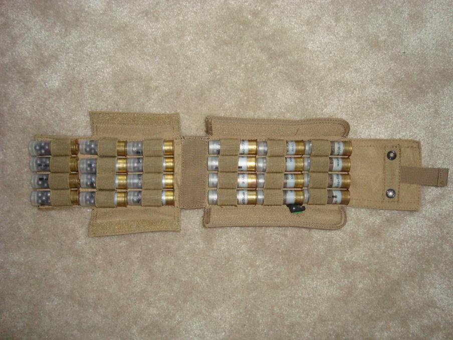 I use the Condor shotgun shell holders. Both the 12 round conventional and the 24 round fold-up. I know there are guys out there who poh poh condor and claim its airsoft garbage. That may have been true in the beginning but the product is in my opinion a great value. I prefer the 12 round conventional because simply it is easier to use under stress. The 24 rnd is great for storing ammo that I attach to a backpack or to a shotgun case/scabbard.