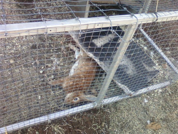 Just moved into this place recently and something killed my rabbit today while I was at work. Where I used to live I kept him in this pen inside a dog pen. My family thought I was nuts for "layered security". I guess they are gonna learn the hard lesson tonight when they get in. This rabbit wasn't really for food as much as a pet although I ain't as attached to critters as that feller and his horse on the other days post. I'm gonna eat, period.