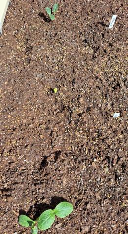 My first acorn squash has sprouted!! Okay, it's a tiny sprout, but it's alive! It's halfway between the two larger plants. Now, spaghetti, butternut, and acorn squash are all growing. This is beautiful gardening weather, warm and breezy. I'm going to put in cabbage, onions, and maybe turnips and beets in other containers. I'll water the garden as soon as the contractor is done destroying my sprayer and disconnects his hose from my hose bib😂