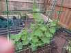 Now I have 5 squash blossoms and more cucumber blossoms😁 I didn't get photos because I had to get up at 4 AM for medical duty and I was too tired. The cukes are climbing the trellis like crazy and are almost at the top! I planted my largest sweet potato slip today and gave it a good shower. If it makes it through the night, I'll plant two more tomorrow. I'm hoping for a good crop of sweet potatoes so I can pressure can them in the fall. Other than that, I sprayed some weeds between the containers and pulled some small ones out of the containers. I ordered new hose nozzles because the contractors ruined mine when they were working concrete🤬 I have a free one I got for doing a product review, but it doesn't have the right settings for gardening.