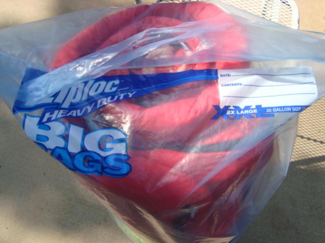 Ok we have the food stored against bugs, how about them sleeping bags? This is a simple solution we use, 20 gallon XXL Ziplock bags. They will hold 2 regular bags or one triple layer military sleeping bag. It
