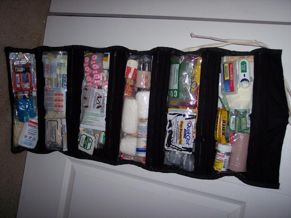 I have been building my own First aid kit by buying a little at a time. I also made my own roll up style first aid kit storage bag w/ zippered see through pockets & ties to store it all in. I think I can handle just about anything with this kit.