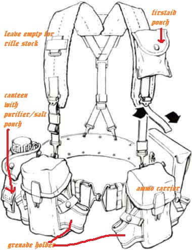 And one thing about putting the mag pouches up front...be careful about that placement. Going prone in a hurry + six mags in pouches right on the front of your hip bones = OUCH! I tended to put mine off to the sides more than the front and used the compass pouches for other stuff since it didn't quite hurt as much when slamming into the ground. Hard earned lessons of pouch placement on ALICE gear.
