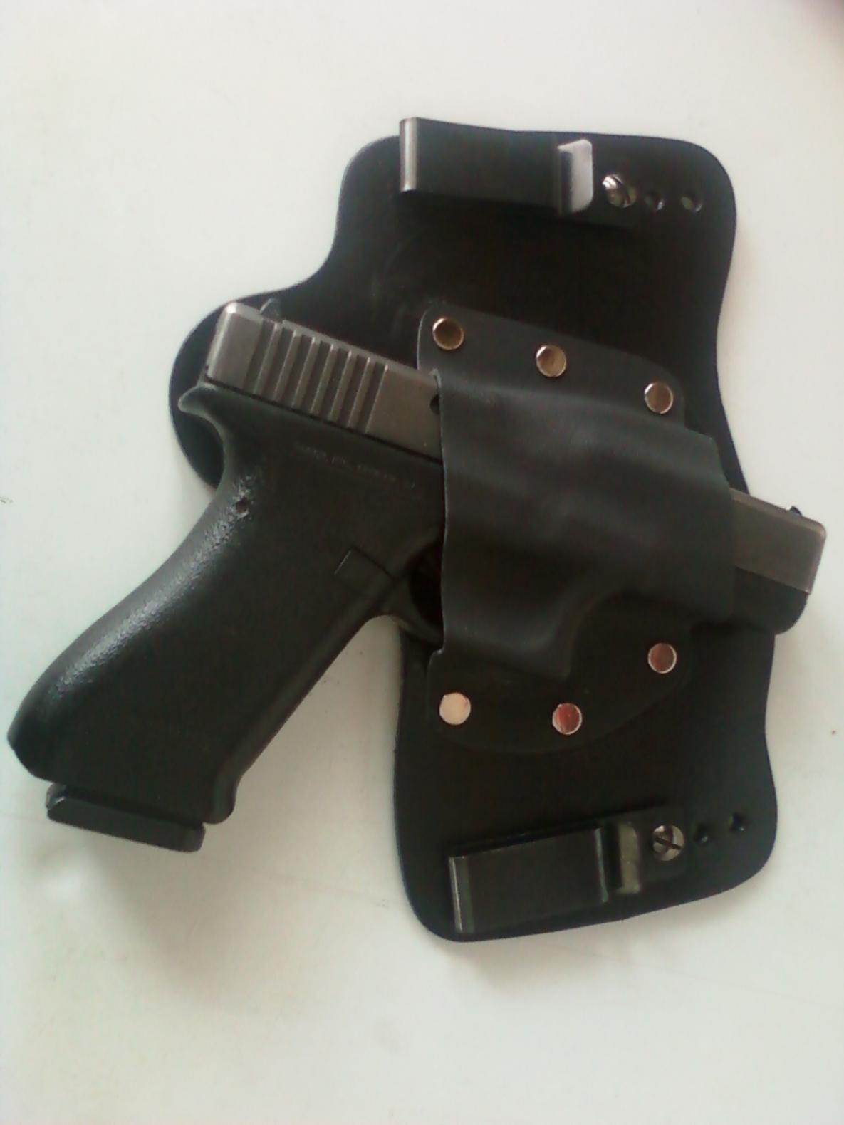 The advantages to the hybrid are the comfort of the leather backing, the cut that allows for the draw, the kydex that stays open for reholstering, the wider stance for smaller printing against shirts, the ability to move the way it carries with a few screws. It also holds my full size G17 without rubbing or any other issues.