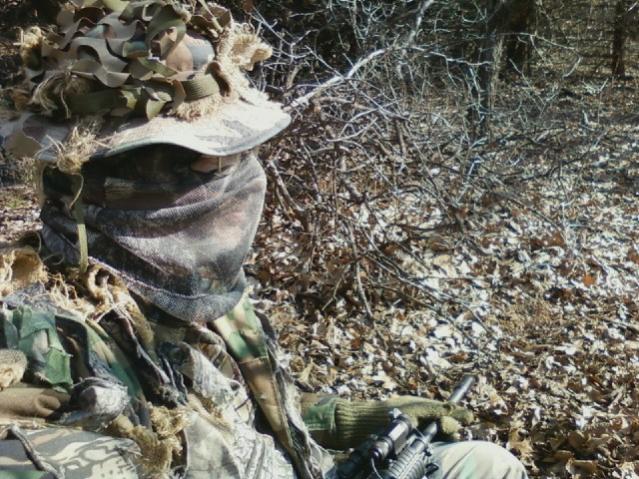 Blending in with surrounding terrain is also important and placing concealment between you and the item you are hiding from will help mask movement. Having items behind you will break up the all too familiar human form as well.